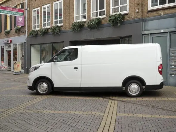 De Maxus eDeliver3 werd in het voorjaar van 2019 gepresenteerd, en nu is de auto dan eindelijk in Nederland. Maxus mag dan nog altijd geen bekende naam zijn in Nederland, de Chinese fabrikant SAIC Motors is de grootste autofabrikant van China, dus dit is geen kleine speler. De eDeliver3 is een kleiner model dan de EV80 die we vorig jaar in de Bestelauto-test hadden. De eDeliver3 is duidelijk veel moderner, met een eigentijds front. Ons testmodel had een lange wielbasis, wat in combinatie met de witte carrosserie een wat eigenaardig ogend model oplevert. De korte wielbasis staat de eDeliver3 beter. Aan de voorzijde van de auto zijn diverse carrosseriedelen van composietmateriaal. Even wennen, maar wel lekker licht en snel en goedkoop vervangbaar bij eventuele schade. Onder de motorkap zien we een kleine 90 kW sterke elektromotor. Onder de auto zien we dat het 53 kWh accupakket mooi is weggewerkt. De eDeliver3 heeft een heel net ontworpen interieur en goed zittende stoelen. De bouwkwaliteit is oké, maar haalt het niet bij die van westerse merken. Op ergonomisch gebied moeten de Chinezen nog wel wat leren. Zo is het stuur niet in diepte verstelbaar, zit de knop om de drie standenregeneratie te verstellen links van het stuur op een lastige plek, en zitten de knoppen voor de stoelverwarming bijna op de vloer! De eDeliver3 heeft met zijn lange wielbasis ruim 6 kuub laadvolume. Aan laadvermogen mag bijna 1.000 kg mee. Vanaf volgend jaar mag de eDeliver3 1.100 kg trekken. De aandrijflijn van de Maxus is uitstekend. De auto is lekker vlot en toonde zich tijdens onze test erg zuinig. Daarvoor hoefden we niet eens de rijmodus ‘Eco’ aan te spreken. Vergelijk je de Maxus met Europese elektrische bestelauto’s, dan zie je dat de technologie en services niet van hetzelfde niveau zijn. Verwacht bij Maxus geen adaptive cruise control met stop & go, spraakgestuurde commando’s of een app waarmee je de laadcyclus controleert. Wie zonder dat soort vindingen kan leven, heeft aan de Maxus een prima elektrische besteller, die je met 243 km actieradius voldoende reikwijdte voor een dag werken geeft.