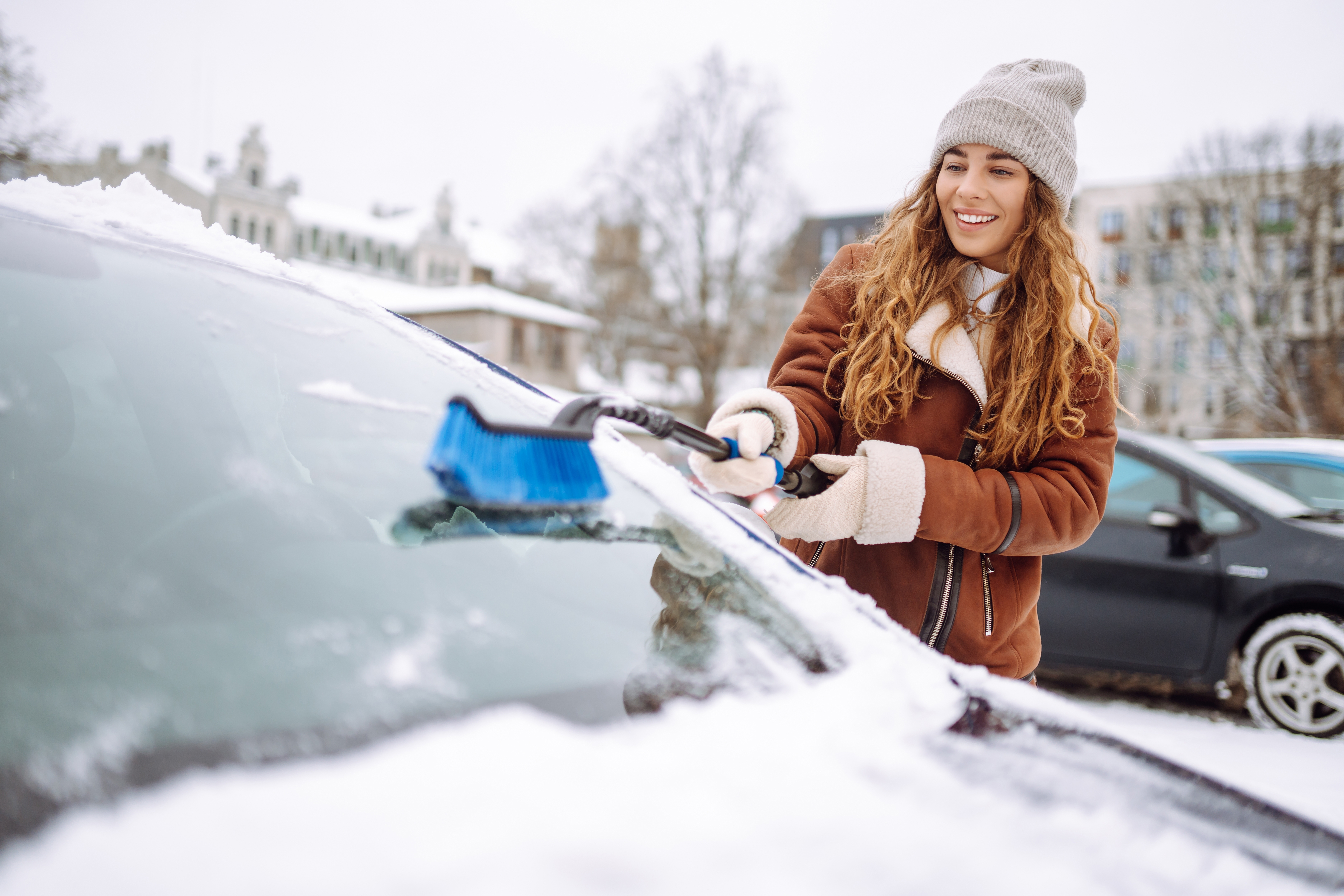 Neem daarom ’s ochtends een paar minuten extra. Zet ruit-, spiegel- en achterruitverwarming aan, maak lampen en reflectoren schoon en verwijder sneeuw van motorkap en dak (ja, dat kan een flinke klus zijn). Vergeet buitenspiegels en kentekenplaten niet en zorg dat alle ruiten volledig ijs- en sneeuwvrij zijn. Gebruik een zachte borstel en krabber om krassen te voorkomen; vastgevroren sneeuw laat zich het best verwijderen door voor te verwarmen of met ontdooispray.