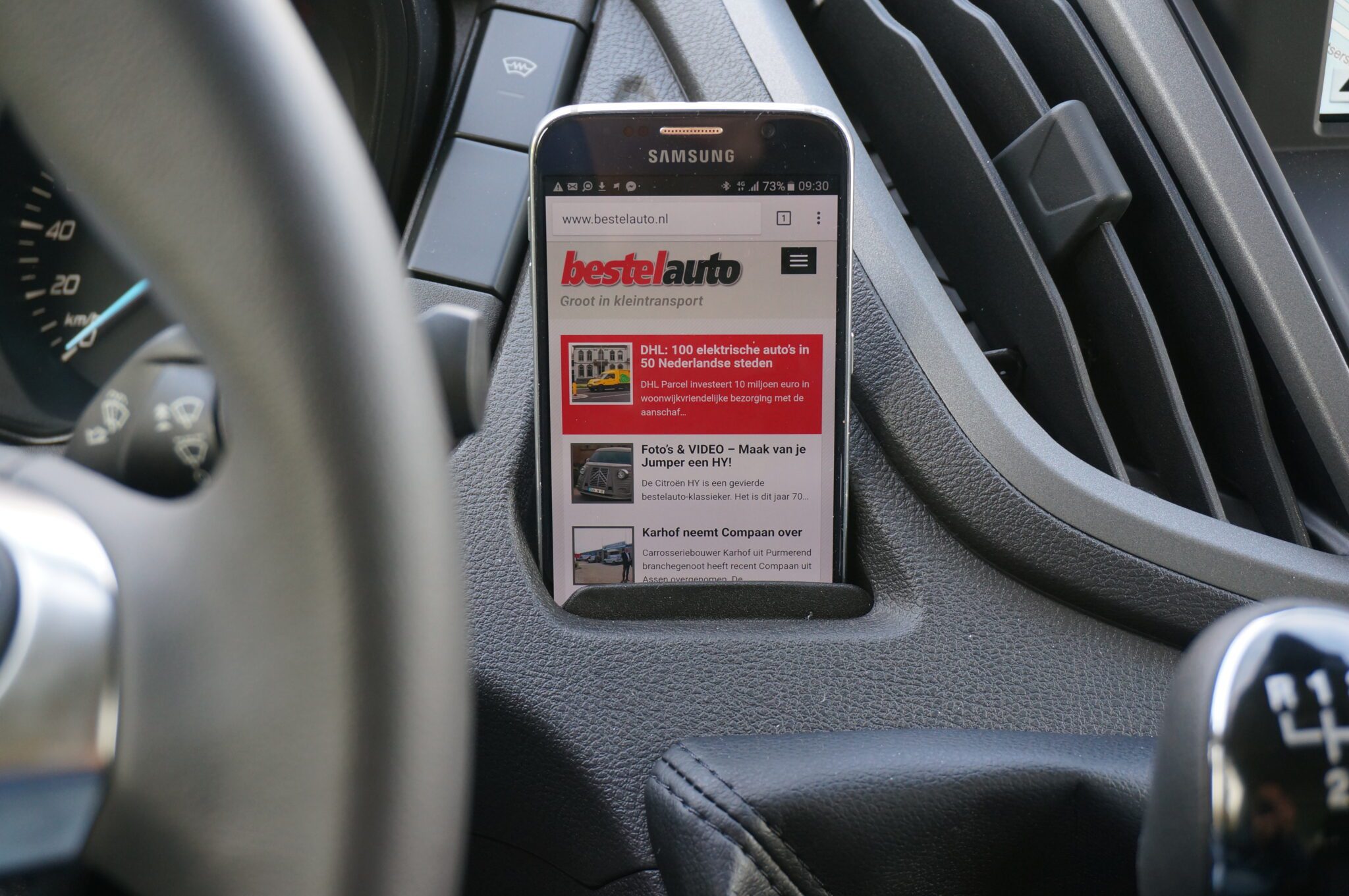 Als we naar binnen klimmen hebben we wel iets van een aha-erlebnis: dit is ontegenzeggelijk een Ford-interieur. Het kleine, maar fijn in de hand liggende stuur, de goed zittende en goed verstelbare stoel, de vele opbergruimte, de beker- en flessenhouders, het is allemaal wat we van Ford kennen en het is goed het weer tegen te komen in deze Transit. Natuurlijk is deze Transit helemaal bij de tijd met connectiviteit via BlueTooth, VoiceControl en aansluitingen voor telefoon of andere elektronica. In het multimediasysteem vinden we navigatie, maar ook DAB+ en SYNCIII. De bestuurdersstoel is voorzien van verwarming en tussen de stoel en de bijrijdersbank zit een 230V aansluitpunt. Dat is een extra van 100 euro, maar volgens ons wel een goede bestede in deze tijd dat je alles maar moet opladen. De cabine van de Ford is uitermate comfortabel. Het enige dat we misten was een handgreep aan de A-stijl die het instappen wat makkelijker maakt.