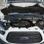 Ford heeft de naam fijn rijdende auto’s te maken, en daar is deze Transit geen uitzondering op. Hij toont zich ondanks zijn hoge opbouw heel stabiel, maar dat kan ook komen door het standaard Side Wind Stabilisation systeem. Het onderstel verwerkt oneffenheden in de weg zo dat ze maar miniem voelbaar zijn in de cabine. Ford bereikt haar uitstekende weggedrag door toepassing van onder meer ESP met Curve Control en Roll Stability Control. In de stad is het met de Ford heerlijk rijden. Dankzij de brede spiegels is manoeuvreren ook goed te doen, zo ervaren wij bij een rondje binnenstad. Op de snelweg zorgt de 2.0 liter motor voor snel optrekken. Echt scheuren is er niet bij: met moeite haalt de Transit de 120 km/h. Misschien zit daar nog wat rek in, want onze testauto was brandnieuw, met maar 500 km op de teller. Het verbruik is met 1 liter op 8,4 km nog niet geweldig, maar ook dat verbetert hopelijk als de auto wat beter ingereden is. Een Euro 6 motor betekent ook Adblue tanken. Ford adviseert om de tien tankbeurten diesel ook wat Adblue te tanken. Het infodisplay waarschuwt overigens ook om dat tijdig te doen. Wie geen Adblue tankt, kan op den duur niet verder rijden uit bescherming van de motor.