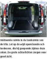 De laadruimte is toegankelijk door twee achterdeuren en een zijschuifdeur rechts. Opvallend aan de achterdeuren is dat ze 240 graden open kunnen draaien. Ze scharnieren dus net zo ver tot ze aan de zijkant van de auto de carrosserie raken. Daar is, heel slim, een magneet gemonteerd die mooi vastklikt aan de magneet op de achterdeur. Een puike vinding die voorkomt dat deuren open of juist dicht waaien tijdens het laden en lossen. De laadruimte van de verlengde Vito is 249 cm lang, en dat terwijl de wielbasis van de verlengde versie met 320 cm niet langer is geworden.