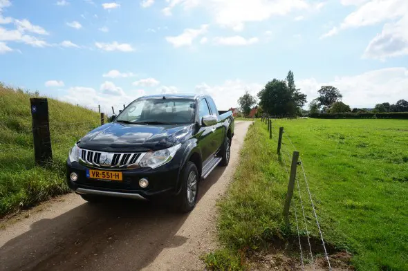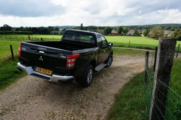 De tweepersoons Mitsubishi L200 Club Cab die we ophalen is een robuuste pick-up. We zien een aerodynamisch gevormde voorzijde en aan de achterzijde een goed bruikbare laadruimte. Met een laadvermogen van 1.035 kg kan ook het nodige aan lading meegenomen worden. Deze ‘Intense’ uitvoering beschikt over diverse verchroomde accenten, fraaie 17 inch lichtmetalen velgen met 245/65R17 banden, een zilverkleurige skidplate aan de voorzijde en een achteruitrijcamera in de laadklep. Bovendien ligt in deze uitvoering de nieuwe 181 pk sterke High Power ClearTec dieselmotor met automatisch start/stop systeem. Een zeer prettige en soepele motor.