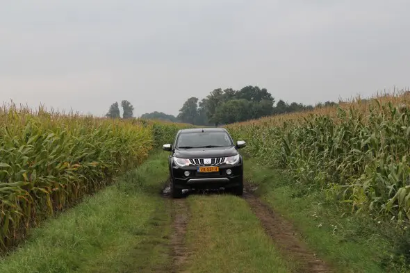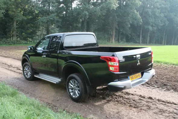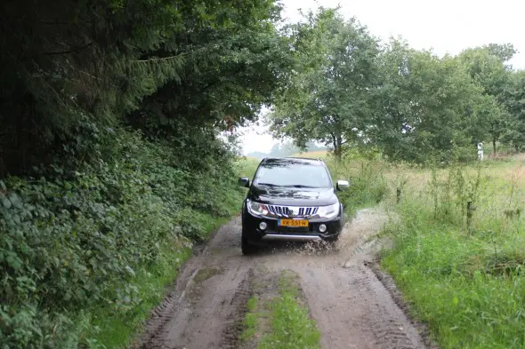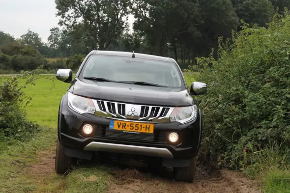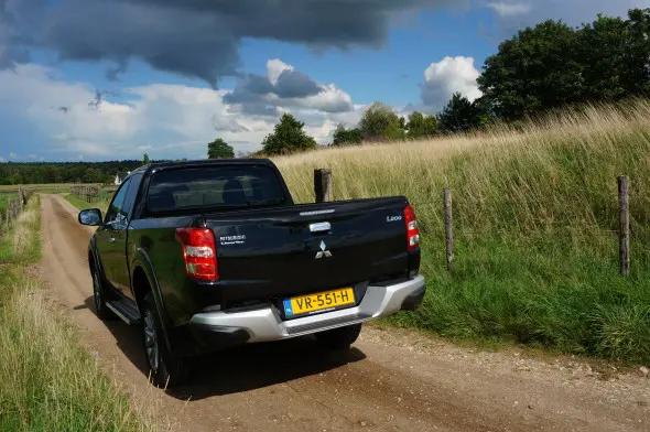 Op gewoon asfalt verrast de L200 ons in positieve zin. De pick-up is namelijk uitzonderlijk stil, zowel bandengeruis als de motor horen we nauwelijks, alleen wat windgeruis aan de achterzijde, waar de laadbak immers de nodige wind vangt. Overigens, bij stevige zijwind merk je wel met een hoge auto op pad te zijn. Schakelen met de zesbak gaat prima en trefzeker. Wel voel je soms de enorme aandrijflijn die onder deze auto zit. Dat geeft wel een veilig gevoel. Qua veiligheid scoort de Mitsubishi punten: zeven airbags (waaronder een knie-airbag) en diverse elektronische systemen waaronder Trailer Stability Assist. Positief zijn we verder over de draaicirkel, die is met 11,8 m voor een 4WD zeker klein te noemen. Met een gemiddeld testverbruik van 1 op 12,5 is deze nieuwe L200 ook nog eens redelijk zuinig, zeker als we kijken naar het vermogen en een laadbak die de nodige wind vangt. Kortom, de nieuwe Mitsubishi L200 is een moderne, zuinige en stille pick-up met sterke 4WD capaciteiten die weer helemaal meedoet in het pick-up segment.