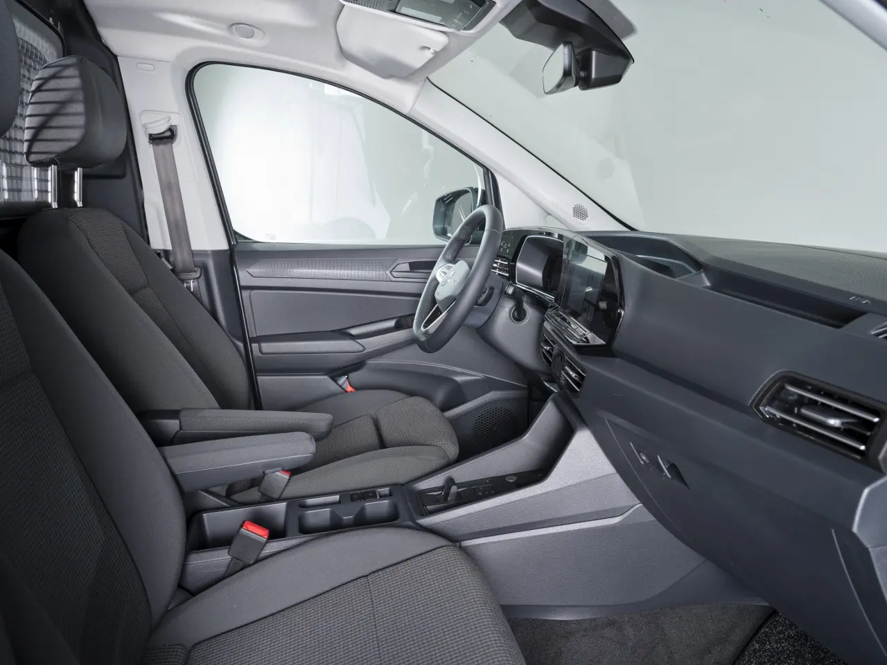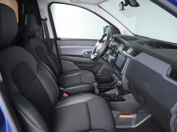 Volkswagen leunt altijd zwaar op haar historie, met natuurlijk het ‘Ben Pon ontwierp de Bulli’ als scheppingsverhaal. Maar de historie van VW kent ook minder fraaie hoofdstukken, zoals dieselgate. Om dat achter zich te laten is Volkswagen een pad van vernieuwing ingeslagen, met elektrificatie als hoofdgerecht en connectiviteit als sidedish. Een elektrische Caddy is er nog niet, maar VW heeft wel de dieselmotor voorzien van dubbele Adblue-inspuiting, TwinDosing. Dat zorgt ervoor dat er minder NOx wordt uitgestoten. De CO2-emissie is bijzonder laag voor een 2.0 diesel van 122 pk, het meeste van alle testauto’s. De Caddy is strak vormgegeven, met wat designitems van de ID-familie. De Caddy is niet het grootst, maar scoort wel het hoogste laadvolume. Hij heeft ook het hoogste laadvermogen, maar heeft met 2.250 ton ook het hoogste totaalgewicht. Hij onderscheidt zich ook in het interieur. Kijk maar eens naar het aparte lichtcluster links van het stuur, het fraaie multimediascherm met app-structuur of het minipookje voor de DSG7-transmissie. Dat laatste geeft, samen met de elektrische handrem, trouwens een ruimtelijke sfeer in het interieur. Gek toch hoe zo’n pook en handrem blijkbaar een barrière opwerpen. Gezeten op de optionele, goed verstelbare bestuurdersstoel zien we het slimme lampje voor de dodehoeksensor. Niet in de spiegel, wat we bij veel andere auto’s zien, maar in de spiegelbehuizing, aan de schaduwkant, aan de kant van de ruit. Slimme plek, altijd goed zichtbaar. De Caddy heeft als enige geen documentenvak tegen het dak van de cabine.
