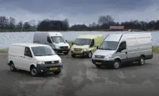 Mercedes-Benz timmert inmiddels ook in Nederland met haar aardgasmodellen flink aan de weg. Hamer Techniek uit Apeldoorn rijdt onder meer rond met Sprinters op aardgas. Mercedes tooit haar CNG-auto’s met de term NGT, wat staat voor Natural Gas Technology. Onze testauto was een 316 NGT met hoog dak. Hij was volgepakt met accessoires, waarbij we het keyless entry systeem even willen noemen, want dat werkt erg prettig. De zijschuifdeur gaat vanzelf open als je in de buurt komt! De motor van de 316 NGT is een 1,8 bivalente motor, geschikt dus voor CNG èn benzine, afkomstig uit de E-klasse personenauto. Mercedes werkt al langer met CNG-techniek in haar personenauto’s. Dat merk je, want de techniek komt verfijnd en beproefd over. De motor levert 156 pk en een koppel van 240 Nm. Daarvoor moeten wel 3000 toeren worden gedraaid. Op de snelweg, bij 120 km/h, draait de motor ook 3000 toeren per minuut, ook al zit er aan de motor een zesversnellingsbak vast. Maar ja, op andere brandstoffen dan diesel draait het nu eenmaal een tandje hoger. Het wordt echter nooit onaangenaam lawaaiig in de auto. Een pluim verdient Mercedes voor de uiterst gebruiksvriendelijke verbruiksmeter van de Highline-uitvoering, en de bijbehorende knoppen op het stuur. Daarmee switch je zonder je handen van het stuur te halen makkelijk tussen ‘Erdgas’ en ‘Benzin’. Daarnaast krijg je een seintje als je drie gastanks bijna leeg zijn. Met zijn 124 liter CNG komt de Benz bijna 200 km ver. Optioneel zijn drie extra gastanks te leveren, waarna het volume op 208 liter komt. Het verbruik zou nog iets beter mogen. Gelukkig heeft de Sprinter ook nog een 100 liter grote benzinetank. In de laadruimte van de Sprinter NGT vonden wij een prachtige inrichting van Bott Vario, maar geen CNG gastanks. Die zitten namelijk allemaal onder de auto weggewerkt. De Mercedes mag 1260 kg aan laadvermogen meenemen, en dat is ongeveer 200 kg minder dan een vergelijkbare Sprinter op diesel. De Mercedes-Benz Sprinter NGT is af-fabriek leverbaar. De vanaf-prijs (niet naar al die extra’s kijken) is zeer aanvaardbaar.