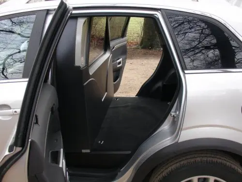 De cabine wordt van de laadruimte gescheiden door een volledig tussenschot met een lekker groot raam. De rechterzijdeur is voorzien van glas, dus over de schouder kan goed naar rechts worden gekeken, wel zo veilig. De carrosserie van Antara is tamelijk onoverzichtelijk. Parkeersensoren aan de voor- en achterzijde helpen een beetje, maar zeker aan de achterzijde zitten ze bij de hoog op de wielen staande Antara zo hoog dat lage paaltjes of betonnen muurtjes makkelijk over het hoofd worden gezien door de sensoren. Goed opletten dus. De laadruimte is met bijna 2 kuub best groot. En dan dat laadvermogen: 705 kg! Alleen de tilhoogte is met 80 cm fors. De zijdeuren bieden een toegang tot de laadruimte van 54 bij 97 cm. De laadruimte is luxueus ingericht met tapijt en zes sjorogen.