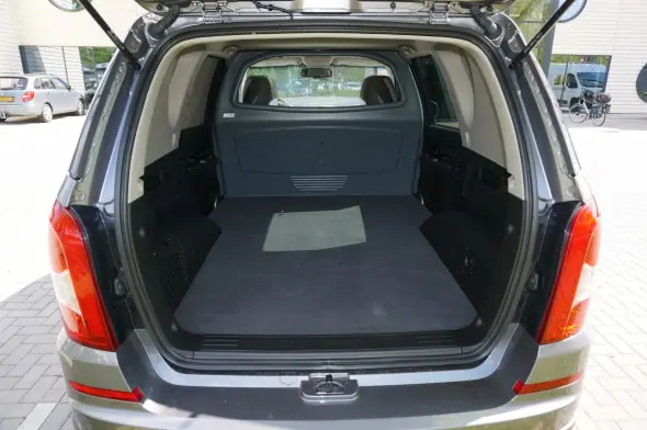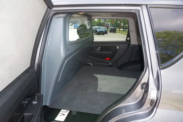 De SsangYong Rexton gaat al wat jaren mee. De vernieuwde Rexton W heeft een modernere neus en koplampunits gekregen en ook de achterzijde toont strak en modern. Al met al staat er een serieus grote SUV te blinken bij de importeur in Alblasserdam. Aan de buitenzijde is niet te zien dat het om een bedrijfswagen gaat. Onze testauto op grijs kenteken is de versie met het standaard dak. Dat betekent tevens dat de auto is voorzien van een dicht tussenschot met een groot raam. Er is ook een versie leverbaar met een iets verhoogd dak, waarbij er slechts een tussenschot van 30 cm hoogte blijft staan. In beide gevallen wordt de ombouw uitgevoerd door ASH Carrosserie in Middelharnis. De laadruimte is door dit bedrijf prima afgewerkt met mooie materialen. De vlakke vloer is met stof bekleedt en alle zijramen in de laadruimte, met uitzondering van de rechterachterdeur, zijn geblindeerd. Via beide achterdeuren wordt een handig opbergvak bereikbaar onder de laadvloer voor bijvoorbeeld een laptop of andere (kostbare) zaken. Een nadeel is de hoge tildrempel.