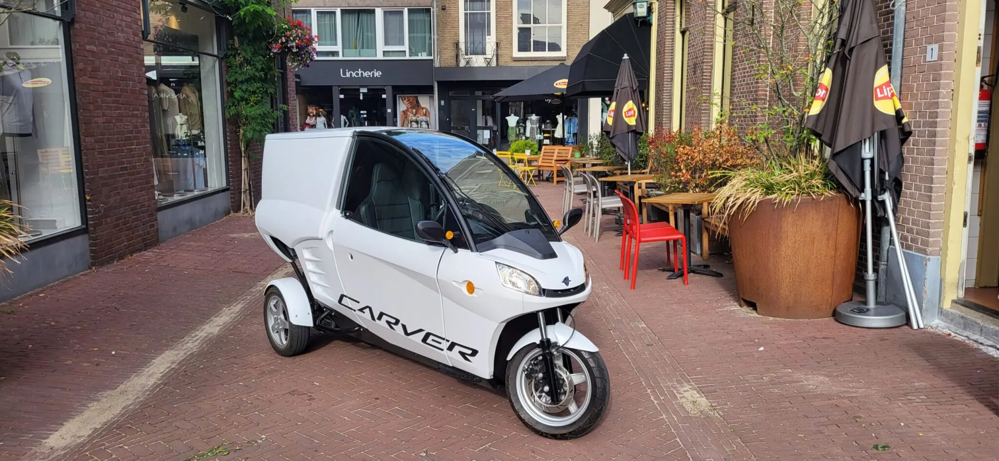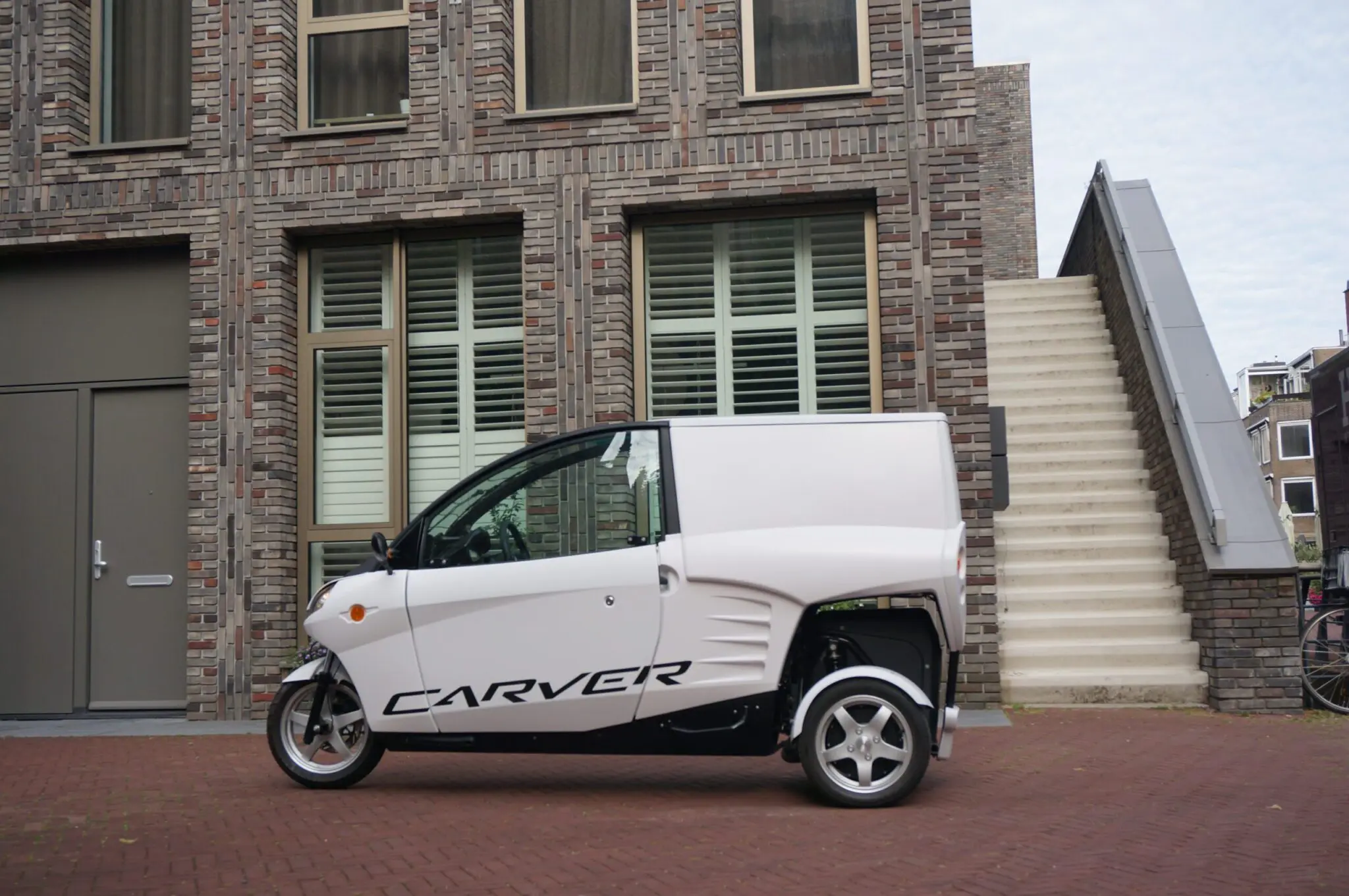 De Carver lijkt in niets op een normale bestelauto. Hij is smal, nog geen meter breed, en heeft drie wielen, vooraan eentje en achter twee. Het concept van de Carver bestaat al sinds 2003, toen nog met een verbrandingsmotor. Sinds 2018 is er een elektrische Carver, puur en alleen voor de stad. Dat is een personenversie, goed om twee personen in te vervoeren. In 2020 kwam de Carver Cargo erbij. Goed voor één persoon en een fikse laadbak.