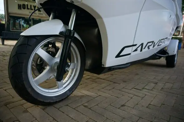 De Carver is een uniek voertuig. Hij beschikt over Dynamic Vehicle Control (DVC). Dat is een innovatief kantelsysteem waarbij de kantelhoek van het voertuig direct wordt gekoppeld aan het rijgedrag van de bestuurder. In de praktijk komt het er op neer dat wanneer de bestuurder naar links of rechts stuurt, het gedeelte met de achterwielen stabiel blijft maar de carrosserie met de bestuurder plat gaat als een motorfiets, met maximaal 40 graden. Voor de bestuurder is dat idee even wennen, maar in de praktijk went het snel. Door de G-krachten blijf je mooi op je plek. De achterwielen blijven altijd op de grond en de laadbak en lading blijven daardoor te allen tijde stabiel.
