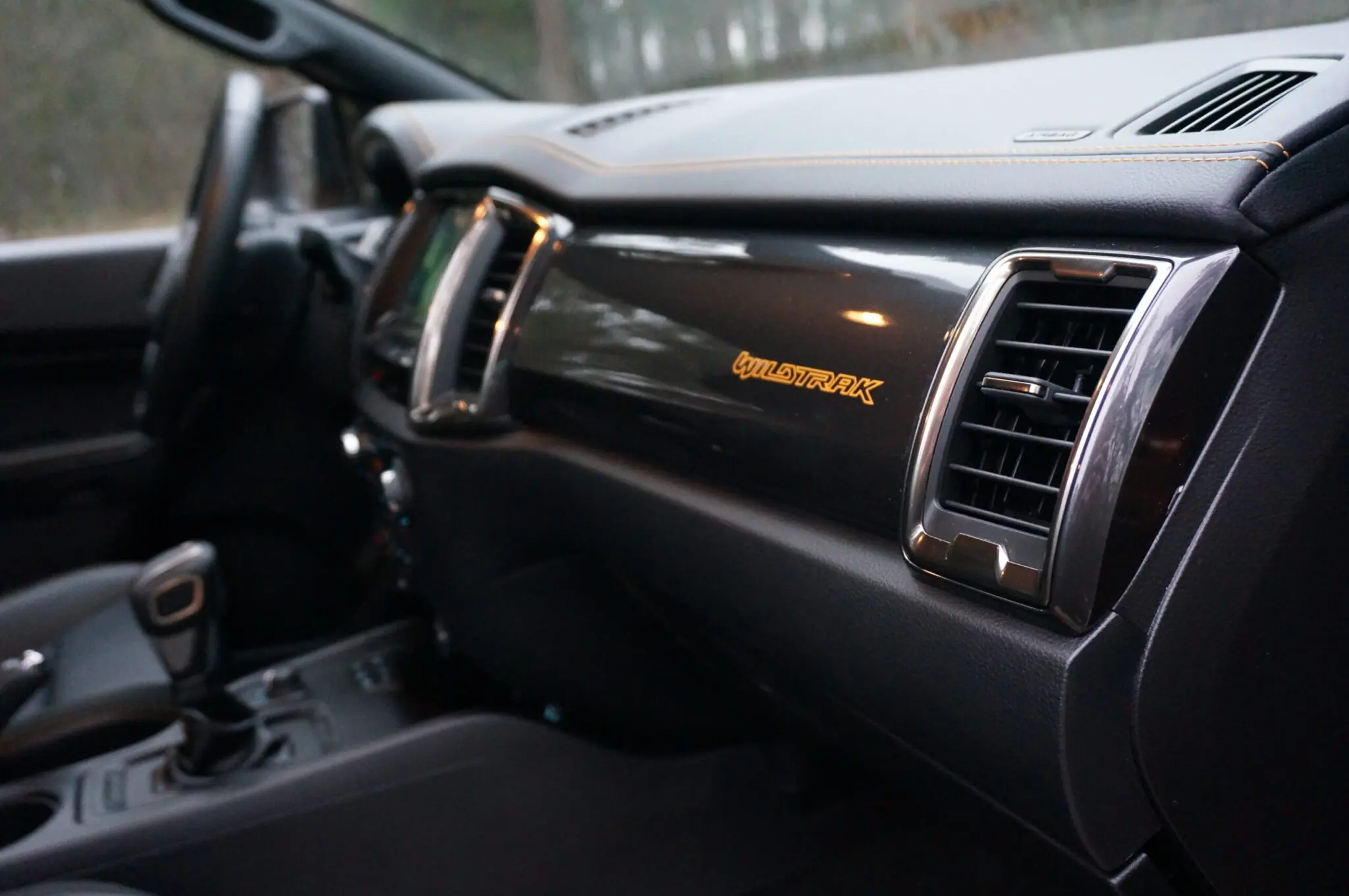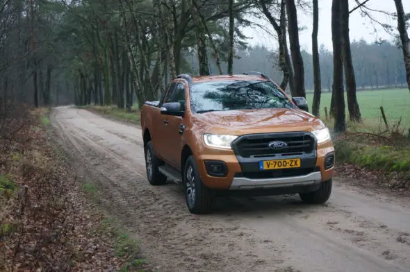 Dat gebeurde natuurlijk niet voor de eerste keer. In Marokko reden we vorig jaar met de ruige Ranger Raptor en met de nieuwe Ranger. En later in Zweden testten we de Ranger samen met zijn mede-kandidaten voor de International Pick-Up Award 2020. Die verkiezing won de Ranger glansrijk, maar nu testen we de winnaar gewoon in Nederland. Ford Nederland heeft ons voorzien van de dikst uitgeruste Ranger die er maar is, de Wildtrak-versie. Dat is vanouds de meest luxe en ruigst uitziende Ranger die er is. Dat is in dit geval niet anders. Kijk maar de exclusieve lakkleur Sabre Orange, de 18 inch lichtmetalen velgen, de treeplanken met titanium inzet, de aerodynamische sportstang met laadbakverlichting, de stoere beschermingsplaten onder het chassis: het ziet er allemaal zeer imposant uit. Ten overvloede staat er ook nog eens diverse malen ‘Wildtrak’ op de carroserie, om duidelijk te maken dat dit niet zomaar een Ranger is.