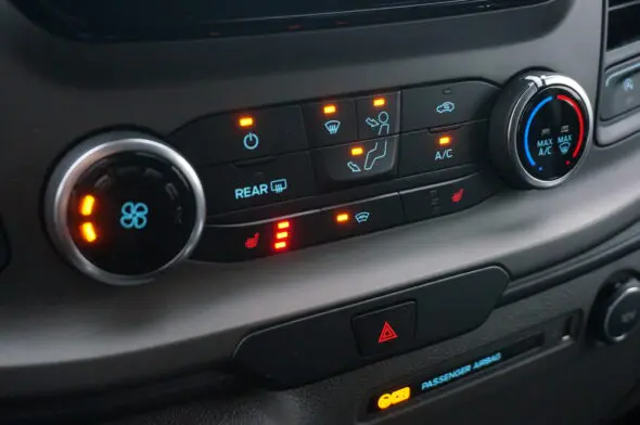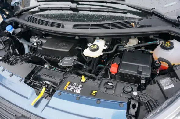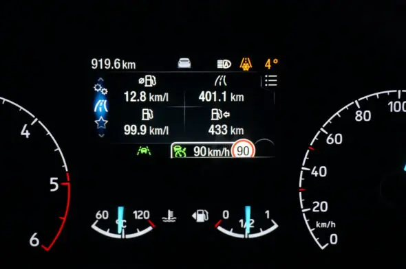 Het verschil tussen een EcoBlue en een EcoBlue Hybrid merk je dus vooral in je portemonnee. Wij scoorden na ruim duizend kilometer een verbruik van 1 liter diesel op 12,7 km, en we reden veelal snelwegkilometers. Toch kun je de hybride componenten ook merken tijdens het rijden. De Transit Custom MHEV heeft namelijk ook een Auto-Start-Stop systeem dat heel secuur werkt. Het zet de motor af als de auto stilstaat, maar ook al bij afremmen onder de 12 km/u. Dat gebeurt zelfs als de auto nog in een versnelling staat. Zo kan de motor uitspringen als je langzaam op een stoplicht afrolt. Onze testauto had overigens een zesgangs handgeschakelde versnellingsbak, want dat is de enige transmissie die nu leverbaar is op de MHEV-auto’s van Ford. Een automatische transmissie volgt in een later stadium.