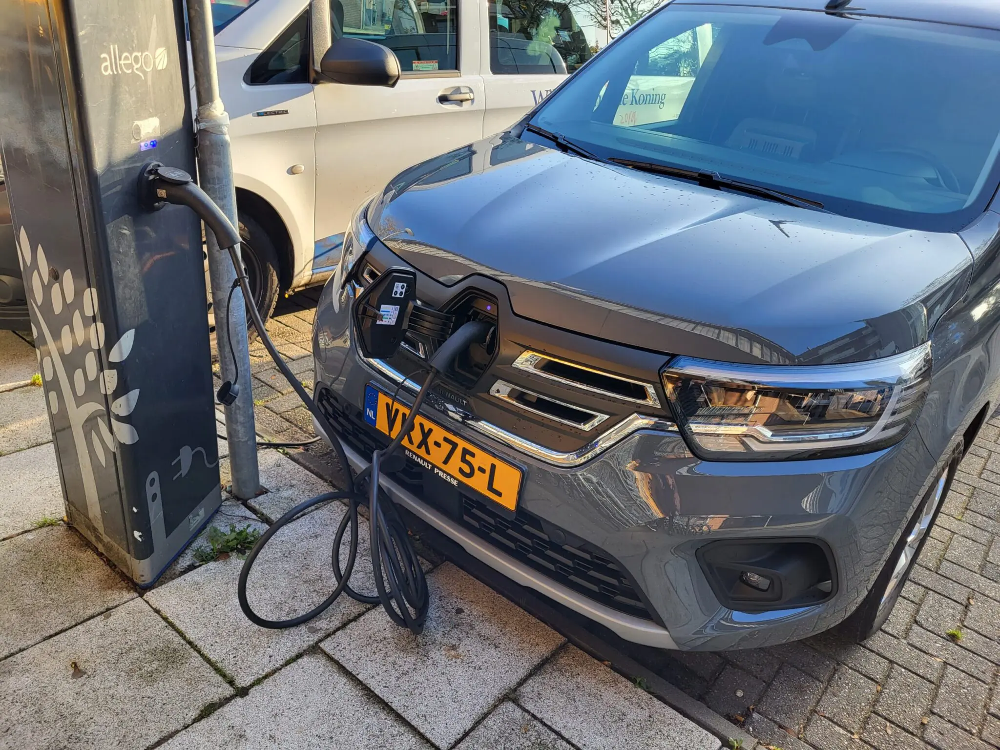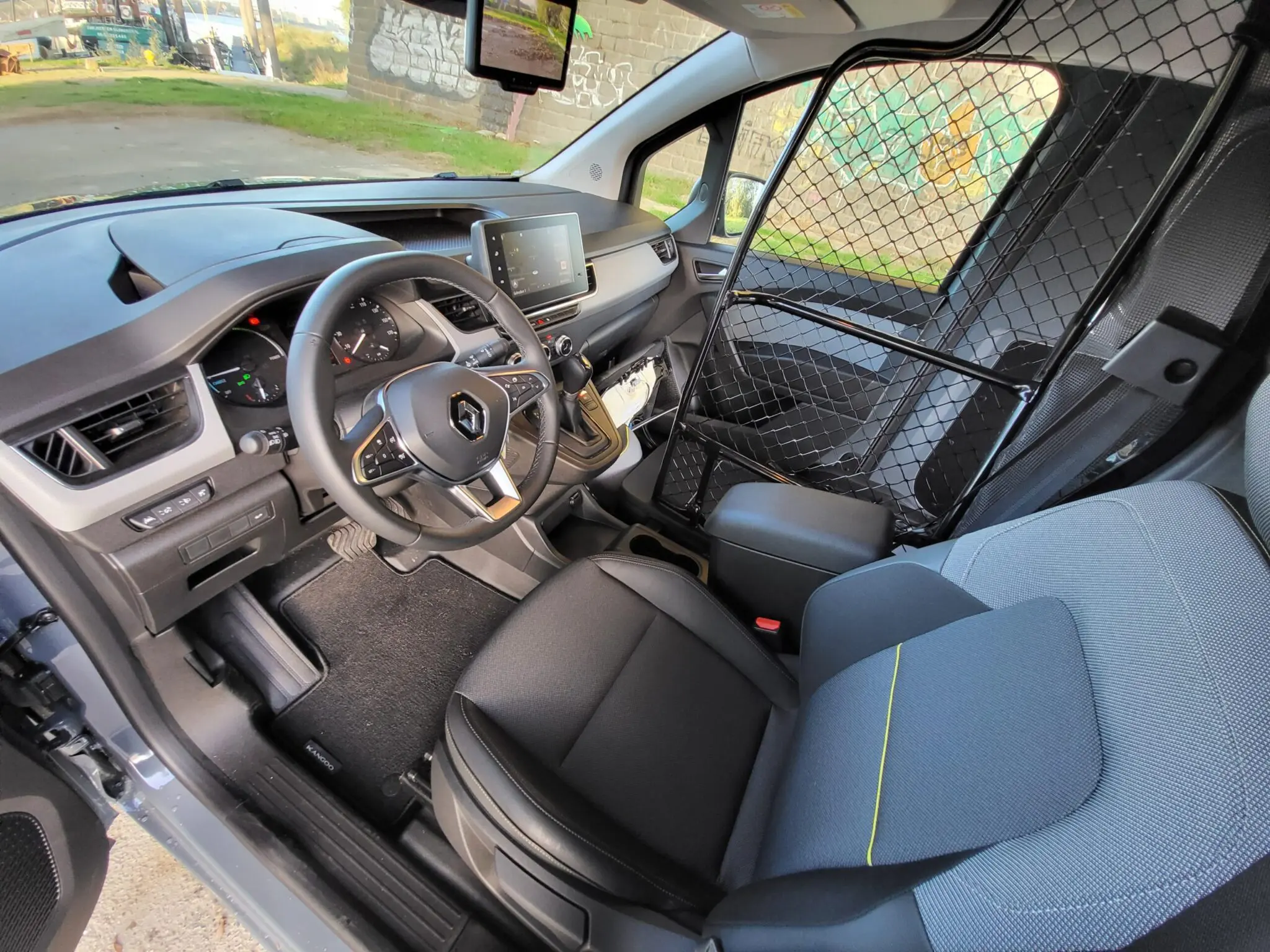 Deze elektrische versie van de Kangoo is 449 cm lang, 186 cm hoog en 192 cm breed. Hij oogt stevig, met wat brede schouders, een stoer uiterlijk wel. De carrosserie is ontworpen door de Nederlandse designer Laurens van den Acker en die heeft de Kangoo een fraai uiterlijk gegeven. Kijk maar eens naar de deflectors in de voorbumper, of de vormgeving van de (optionele) LED Pure Vision koplampen. Ook de lampen aan de achterzijde zijn trouwens fraai om te zien. De Gris Urban lakkleur is misschien niet ieders smaak, het geeft de auto wel een alledaagse look. Zeker met de lichtmetalen wielen is het bestelauto die opvalt. In het interieur zien we veel bekends, want ook hier is veel hetzelfde als bij de dieselKangoo. Helemaal niet erg, want het dashboard zit goed in elkaar en de stoelen zitten goed. Ook is er voldoende opbergruimte, bijvoorbeeld met het vak op het dashboard (achter het stuur), de aflegruimte boven het dak en de grote schuiflade waar vroeger een klein dashboardkastje zat. Prominent aanwezig is het 8 inch grote multimediascherm, dat zelfs met touchscreen lekker snel werkt. Apple Carplay en Android Auto zitten er ook op. Heel fijn vinden we het scherm op de plek waar vroeger de achteruitkijkspiegel zat. De camera geeft een helder beeld door van alles wat zich achter het voertuig bevindt. Elektrische bestelauto’s zijn vaak voorzien van stoelverwarming, maar dat had onze Kangoo niet. Hij heeft wel een warmtepomp, waardoor het interieur verwarmd wordt. In de zomer brengt de airco verkoeling. In de beginnende winter van dit najaar vonden we het, zeker na een nacht met temperaturen richting het vriespunt, best lang duren voor het interieur goed opgewarmd was. Zeker de voeten bleven af en toe koud in onze 35 minuten durende forensenrit. Stoel- en eventueel stuurverwarming lijkt comfortabeler voor de bestuurder. Net als een verwarmbare voorruit kunnen deze zaken worden aangevinkt op de optielijst.