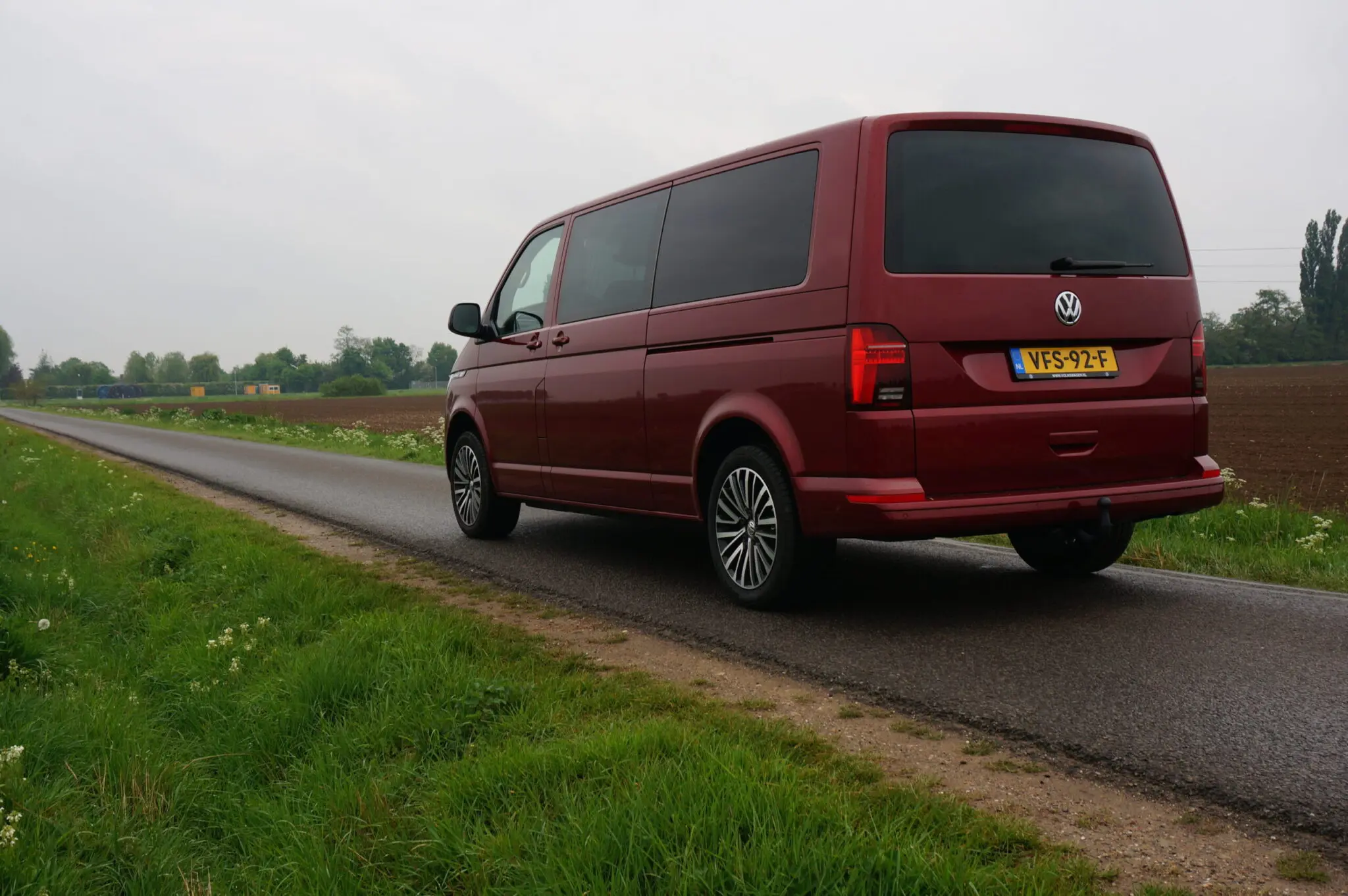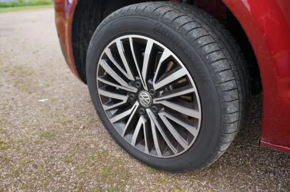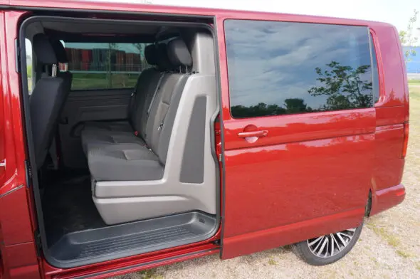 De testauto die we van importeur Pon hebben gekregen is een versie met dubbele cabine. Daarvoor heb je wat ruimte nodig en daarom heeft deze T6.1 een wielbasis van 3400 mm. De Bulli heeft een extra zijschuifdeur aan de linkerkant gekregen, de laadruimte is toegankelijk via een achterklep, en dus niet met achterdeuren. De 17 inch Aracuja lichtmetalen wielen horen bij het Bulli-pakket. Een optie dus, maar het maakt van deze bestelauto wel een heel chique verschijning.