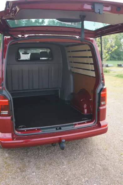 De T6.1 is uiterst luxe en ook solide gebouwd en ingericht op veiligheid, maar hij weegt wel veel. Het gewicht van 2105 kg betekent dat we een maximaal laadvermogen van 895 kg overhouden. Niet echt veel voor een auto van dit formaat en segment, ook al gaat het dan om een dubbele cabine. Het laadvolume van deze Transporter is wel in orde. De ruimte onder de bank van de dubbele cabine zorgt ervoor dat er 63 cm extra laadlengte bij de bijna twee meter standaard laadlengte komt. Handig als je een keer lange latten of ander lang spul moet meenemen. De laadruimte is netjes afgetimmerd en voorzien van een veel licht gevende LED-lamp.