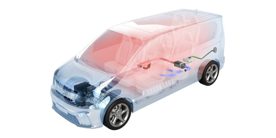 Het is een bekend probleem bij e-bestellers: het verwarmen van het interieur heeft tot gevolg dat de actieradius van het voertuig afneemt. Dat kan oplopen tot wel 35 procent van de totale range. Bijzonder onwenselijk, zeker als de actieradius toch al minder is dan bij een dieselbestelbus. En juist die emissievrije range is belangrijk bij de huidige wetgeving, die vraagt om zonder enige uitstoot te rijden in binnensteden.