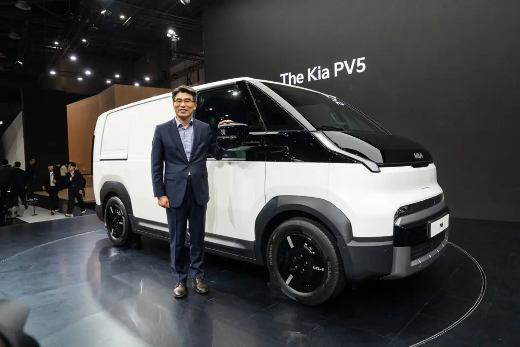 Kia CEO Ho-Sung Song verzekerde Bestelauto dat de PV5 dit najaar leverbaar is vanaf 32.370 euro.