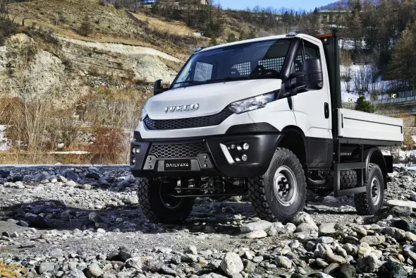 De New Daily 4×4 is geschikt voor alle soorten ondergrond, met een ruime keuze aan beschikbare aandrijfassen op de versnellingsbak en het tussendiferentieel. De Daily 4×4 kan worden uitgerust met zowel weg- als offroadbanden en beschikt over de mogelijkheid om vooraan hulptoestellen zoals lieren en sneeuwploegen aan te sluiten. De Daily 4×4 is bedoeld voor offroad, voor alle wegen en voor alle omstandigheden: op bouwterreinen, voor bouw- en onderhoudsfirma’s – in het bijzonder op grote hoogte – en voor brandweerkorpsen.