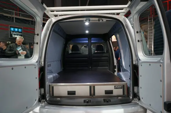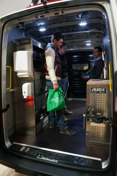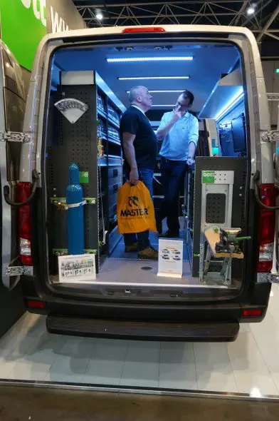 Bij de entree was het al raak, want daar had Volkswagen Bedrijfswagens een nieuwe Crafter en een Amarok (onze testauto!) neergezet. Net iets daarachter stond een Fiat Ducato Natural Power, op aardgas dus. Binnen in de hallen ging de grootste primeur naar MAN, dat met de TGE weer een echte bestelauto in haar gamma heeft. Er stond een gesloten bestelauto en een stoere zwarte chassis-cabine, compleet met manschappencabine en open laadbak. Een echte bouwauto dus. Het was flink druk bij MAN. Bij collegamerk Volkswagen debuteerde de nieuwe Crafter. Ook die werd goed bekeken. De Volkswagens op de stand waren deels voorzien van Aluca bedrijfswageninrichting. Bedrijfswageninrichters waren er ook. De firma Bott liet trots weten gecertificeerd te zijn door Opel. Interessant was ook de geïntegreerde LED-verlichting in vastzetrails, plus de vastzetrails op de zijkanten van de inbouwkasten. Bij concurrent Sortimo debuteerde de Simpleco-uitvoeringen van Gedore Technag. Bij Toyota liet men van de ProAce voor het eerst de nieuwe dubbele cabine zien. Een opklapbare zitting in de bank onthulde daar wat extra bergruimte.