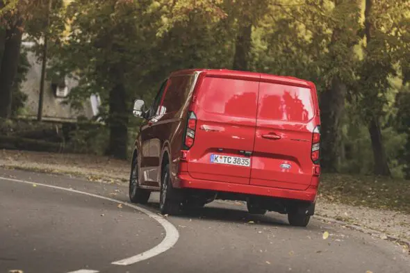 Ford stond altijd bekend om het goede weggedrag van haar bestelauto’s, maar met de nieuwe Transit Custom overtreft het merk zichzelf wederom. De Transit Custom ligt goed op de weg en laat zich precies besturen. Een van de oorzaken daarvan is de nieuwe onafhankelijke wielophanging, die Ford ook de gelegenheid gaf het chassis goed in te richten voor alle aandrijfvarianten. Deze Transit Custom is er ook als PHEV (voorjaar 2024) en als BEV. De E-Transit Custom komt in de zomer van volgend jaar op de markt. De Transit Custom bewijst zichzelf echt op het niet altijd fraaie Belgische wegdek. Oneffenheden zijn amper te voelen in het stuur.