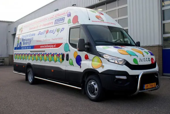 Een bus met een formaat zoals de nieuwe Daily van het Amsterdams Ballonnen Bedrijf dient niet alleen als transportmiddel. Rien Spek vertelt: “Wanneer wij een levering in Groningen of Limburg hebben verzorgd, zien we regelmatig dat er kort daarna bestellingen uit die regio komen. Onze bedrijfswagens dienen ook als reclame-uiting en daarom kiezen we voor een opvallende bestickering!” Opvallen doet de Iveco Daily zeker. “Ballonnen horen bij een feestje. Ik weet zeker dat er een glimlach bij klanten ontstaat als ze een bus van ons aan zien komen.”