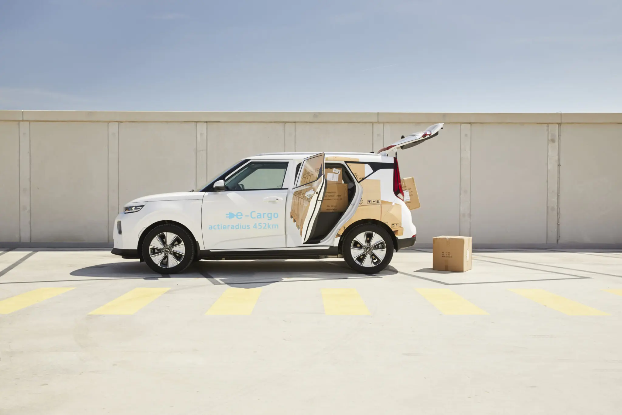 Met de speciale cargo-conversiekit kan elke e-Soul worden omgebouwd naar een bestelauto. En door zijn slimme constructie kan de e-Soul Cargo ook weer worden teruggebouwd naar een 5-zits personenversie. Ook wanneer de e-Soul is omgebouwd als besteller, blijft hij op geel kenteken geregistreerd. Hij is vanwege zijn elektrische aandrijving wel volledig BPM-vrij. Met die elektrische aandrijflijn is er een actieradius van 452 km mogelijk (WLTP). Het ombouwen is trouwens wel mogelijk, maar niet heel eenvoudig. De foto’s laten het ook al zien; het is niet zo dat de e-Soul Cargo doordeweeks voor het bedrijf en in het weekend voor het gezin kan worden gebruikt. De achterbank van de auto is bij de e-Soul Cargo ook echt niet meer aanwezig.