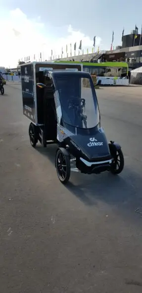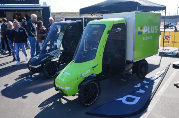 Niet over het circuit, maar wel over de paddock, reden diverse last-mile oplossingen. Zoals de Sevic Cargo, nu ondergebracht bij Welectric. Dat vertegenwoordigde ook de Carver Cargo, die we vorig jaar ook al zagen in Zandvoort. Nieuw in Zandvoort was de CitKar Loadster, een elektrisch ondersteunde cargobike uit Duitsland met een grote laadbox achterop. We reden er een rondje mee en merkten dat we de elektrische trapondersteuning goed het werk moesten laten doen, je bent snel geneigd te hard te trappen. Remmen en manoeuvreren, zelfs achteruitrijden gaat makkelijk.