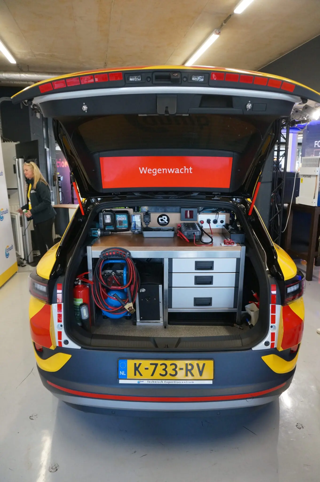 Op de Volkswagen Maatwerk beurs zagen we onlangs al de Volkswagen ID.3 Cargo van Pouw. Die was ook in Zandvoort weer aanwezig. De ANWB verraste met een Wegenwacht-auto in de vorm van een Volkswagen ID.4 met laadruimte, natuurlijk volledig ingericht voor hulp aan gestrande weggebruikers. In een andere pitbox stond een Hyundai Kona Cargo, ook ontdaan van de achterbank en voorzien van een vlakke laadvloer. De omgebouwde personenauto’s zijn nu in trek als bestelauto omdat ze volledig BPM- en BTW-vrij zijn, maar bovendien ook nog eens een actieradius hebben die in veel gevallen boven die van een reguliere elektrische bestelauto liggen.