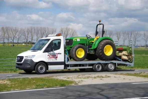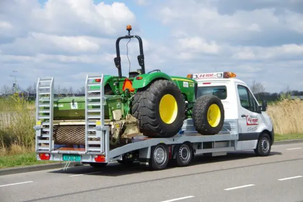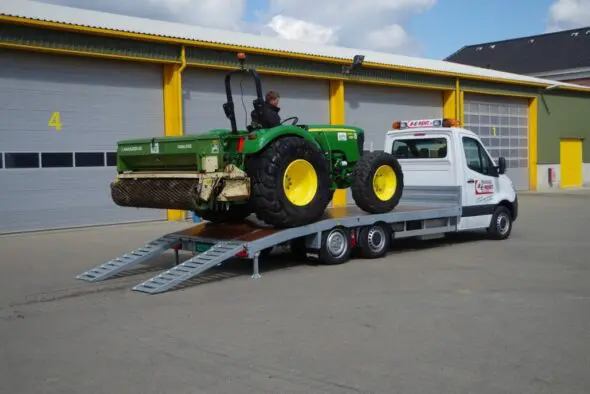 De oplegger is luchtgeveerd en schuin aflopend zodat de oprijhoogte maar 52 cm is. Met een oprijhoek vanaf 12° is de oplegger zeer geschikt voor het transport van grasmaaiers, wielladers en tractoren.