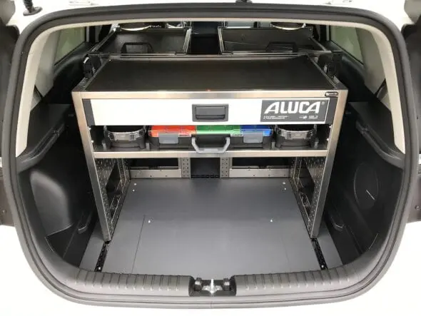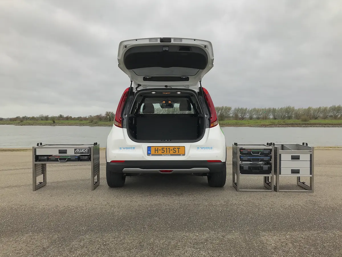 Dankzij lichtgewicht materialen als aluminium en kunststof blijft de actieradius optimaal behouden. De aluminium bedrijfswageninrichting is bovendien volledig modulair: de samenstelling is exact af te stemmen op de werkzaamheden.