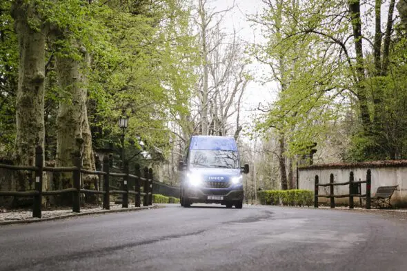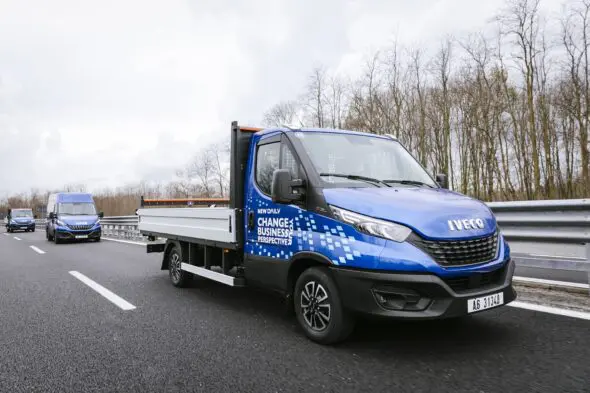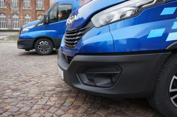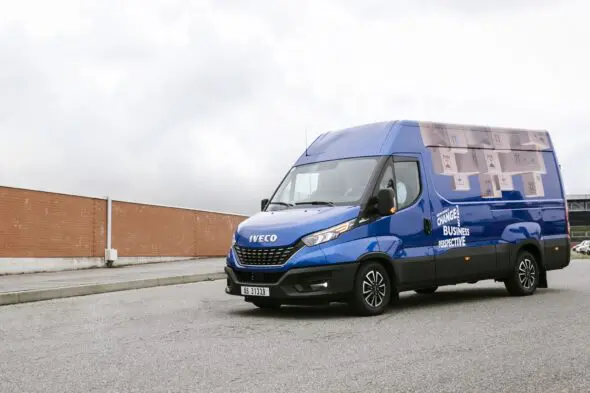 Voordat we de weg opgaan, nemen we even een kijkje onder de motorkap. De Daily is nog altijd leverbaar met de 2,3 en de 3,0 liter dieselmotoren, maar die voldoen nu wel aan de Euro 6d-TEMP en Euro VI D emissie-eisen. Van de 3.0 liter motor is een nieuwe vermogensversie van 210 pk. De diesels hebben ook flink wat nieuwe functies gekregen. Zo is er een nieuwe elektronisch geregelde turbo met variabele geometrie en een nieuwe 220A (12 V) dynamo. Voor in de stad hebben de motoren een start-stop functie gekregen, die ook leverbaar is met de Hi-Matic automaat. Vanzelfsprekend blijft de CNG-versie van de Daily, goed voor 136 pk, leverbaar. Ook de elektrische versie is leverbaar, maar die weegt nog altijd 5 ton. Een downscaling naar 3,5 ton zou voor de hand liggen, maar dan hou je volgens Iveco te weinig laadvermogen over. Wel wordt er gewerkt aan een 4,2 tons EV-versie om mee te kunnen doen in de uitzonderingsregeling van het C-rijbewijs voor elektrische bestelauto’s.