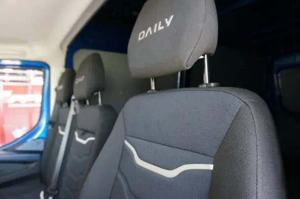 Dan kunnen we eindelijk Turijn in met de nieuwe Daily en dan doen we met een gesloten bestelauto, voorzien van de 2,3 liter diesel met 156 pk en een handgeschakelde zesversnellingsbak. Al bij de eerste meters merken we nog een nieuwtje van de Daily: elektrische stuurbekrachtiging. Het stuurt lekker licht, wat zeker in de stad een uitkomst is. Daarbij is er nog de City-modus, die de stuurbekrachtiging met nog eens 70 procent verlicht. Sommigen vinden dat tè licht, maar zeker bij manoeuvreren in de stad is het erg prettig. In de stad zou ook start-stop zich moeten laten gelden, maar zelfs bij opgewarmde diesel functioneert het systeem bij ons niet. We merken ook niks van andere nieuwe systemen, maar dat is alleen maar goed. City Pro Brake remt bijvoorbeeld automatisch bij noodremsituaties tussen de 5 en 50 km/h. Bij druk verkeer helpt Queue Assist om automatisch afstand te bewaren tot de voorganger. Een soort ACC voor in de stad dus. Een systeem dat we nog niet eerder zagen en dat zelfs leverbaar is op de 7,2 tons versie van de Daily. Op de snelwegen rond Turijn kunnen we ACC ervaren. Het instellen ervan op het stuur is eenvoudig, aanpassen van de afstand net zo makkelijk. Een koersassistent houdt in de gaten of de Daily niet onbedoeld de rijbaan verlaat en stuurt als het nodig terug. Zodoende kun je zelfs een tijdje het stuur los laten, niet de bedoeling natuurlijk, en de Daily houdt dan mooi zelf koers. Een akoestisch signaal attendeert je wanneer het weer tijd is zelf het stuur ter hand te nemen. Ook nieuw in de Daily is Crosswind Assist, dat elektronisch bijstuurt in geval van hevige zijwind. In de cabine van de Daily blijft het best netjes stil op de snelweg. Het enige dat goed te horen is is windgeruis rond de A-stijlen en het dak. Bij optrekken wil de dieselmotor nog wel eens wat rumoer geven, maar overall is de rij-ervaring in de Daily weer iets beter geworden.