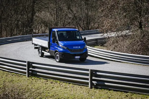 De Daily is er natuurlijk niet alleen als gesloten bestelauto. Hij doet het ook goed als chassis-cabine met een keur aan opbouwmogelijkheden, tot ver boven de 3,5 ton. Ook in dit segment zijn verbeteringen te constateren. Zo ontwierp Iveco een nieuwe dakspoiler met zijfenders die fraai kan aansluiten op een opbouw, en daarnaast is er bij de achteras nu een bladvering met dubbele bladen (twin-leaf) beschikbaar. Fraai is ook de mogelijkheid van TractionPlus, voor extra tractie in moeilijker begaanbaar terrein.