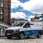 Eerst kijken we maar ’s naar de eVito. Die ziet er van buiten en ook van binnen precies zo uit als een gewone Vito. Er zijn geen concessies gedaan als het gaat om laadruimte bijvoorbeeld. Het laadvolume varieert van 6,0 tot 6,6 m3, want de eVito is er in twee lengtes: 5140 en 5370 mm. De eerste heeft een laadvermogen van 1073 kg, de langere van 1048 kg. De aandrijflijn bestaat uit een 84 kW sterke elektromotor, goed voor 300 Nm koppel. Het accupakket bestaat uit vier accu’s van bij elkaar 41,4 kWh. De eVito heeft een reikwijdte van 150 km (WLTP). Als we voor het eerst door de straten van Hamburg rijden, merken we meteen al dat de eVito heerlijk stil is, net als alle elektrische bestellers. Het is heet in de stad, dus de airco staat aan. Interessant is dat de eVito een systeem heeft met drie standen waarmee comfortzaken meer of minder kunnen worden ingeschakeld, wat energie bespaart. De drie standen zijn C (voor comfort), E en E+. Bij die laatste stand wordt het motorvermogen zelfs geknepen tot 70 kW en het koppel verlaagd naar 270 Nm. Remmen op de motor gaat bij deze eVito heel goed, maar ook dat is in te stellen, in vier standen maar liefst. In D-, de sterkste stand, is de vertraging 1,5 meter per seconde. Al die energie gaat weer terug naar de accu’s, dus met slim rijden zou je verder kunnen komen dan de beloofde 150 km. In D, D+ D++ is de recuperatie minder sterk, tot zelfs gewoon uitrollen. Interessant is ook de mogelijkheid tot voorverwarming of voorkoeling van de eVito. Dat is mogelijk tijdens het laden, waarmee de benodigde energie dan gewoon uit het netwerk wordt gehaald, en niet ten koste gaat van de accucapaciteit. Afhankelijk van de gekozen versie is de eVito is zes tot acht uur weer op te laden. Snelladen is helaas niet mogelijk bij de eVito.