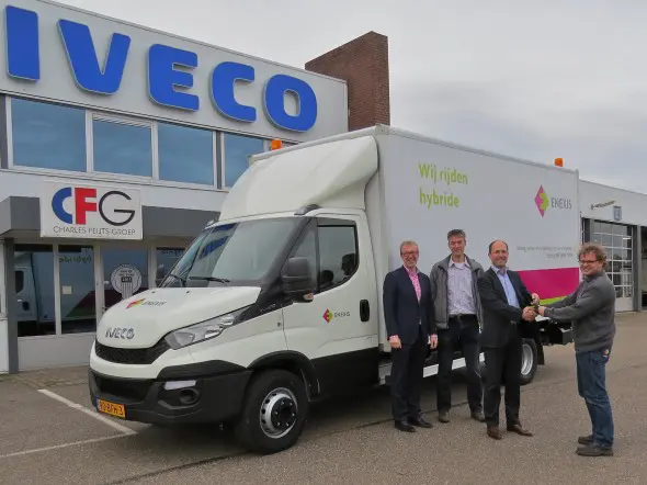 De afdeling Realisatie E van netwerkbedrijf Enexis in Venlo nam onlangs een nieuwe hybride vrachtwagen in gebruik. De officiële overdracht vond plaats bij Iveco dealer Charles Feijts Bedrijfswagens in Venlo.