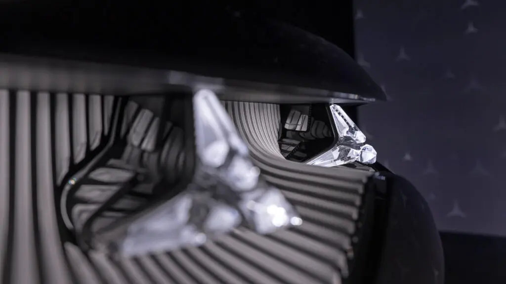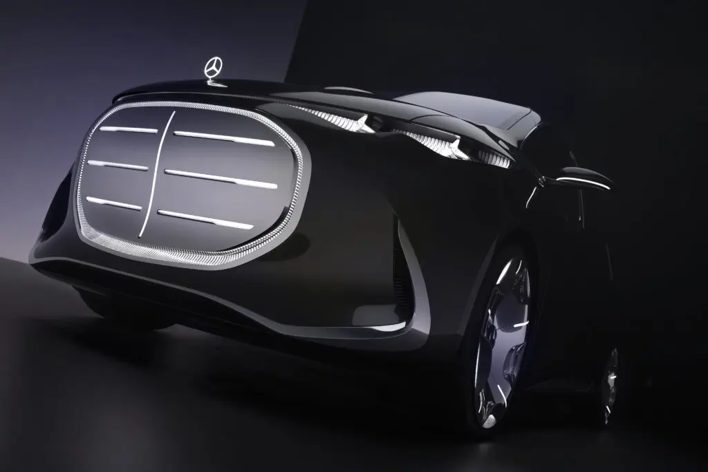 Het exterieur is strak en aerodynamisch, met een lage daklijn, verlichte lamellen en een opvallend vormgegeven voorkant met een helder verlichte Mercedes-ster. De 24 inch wielen? Ook voorzien van lichtgevende elementen. Traditie en toekomst in één elegant statement.