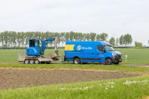 Wou-Ma uit Dinteloord wordt gerund door vader Corné en zoon Wouter Schijvenaars. “Ik doe veel grondwerk voor particulieren, gemeenten en bedrijven”, vertelt Wouter. “Mijn vader Corné werkt veelal voor opdrachtgevers die zich bezighouden met onderhoud aan en het vernieuwen van gas- en waterleidingen. Ook bieden we 24/7 service voor rioolontstopping.”