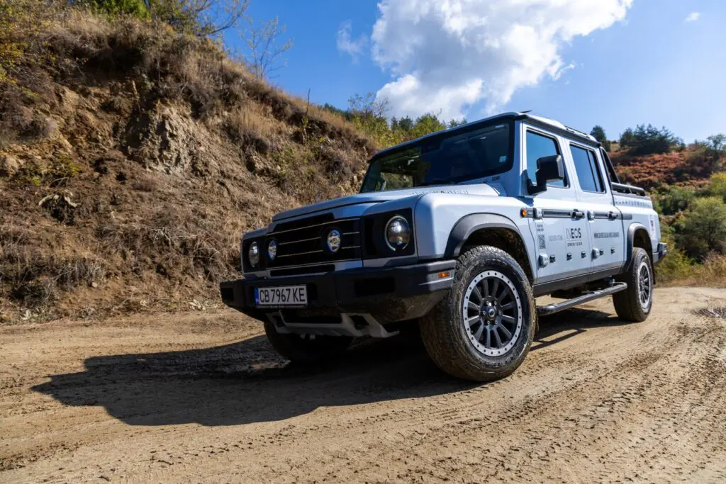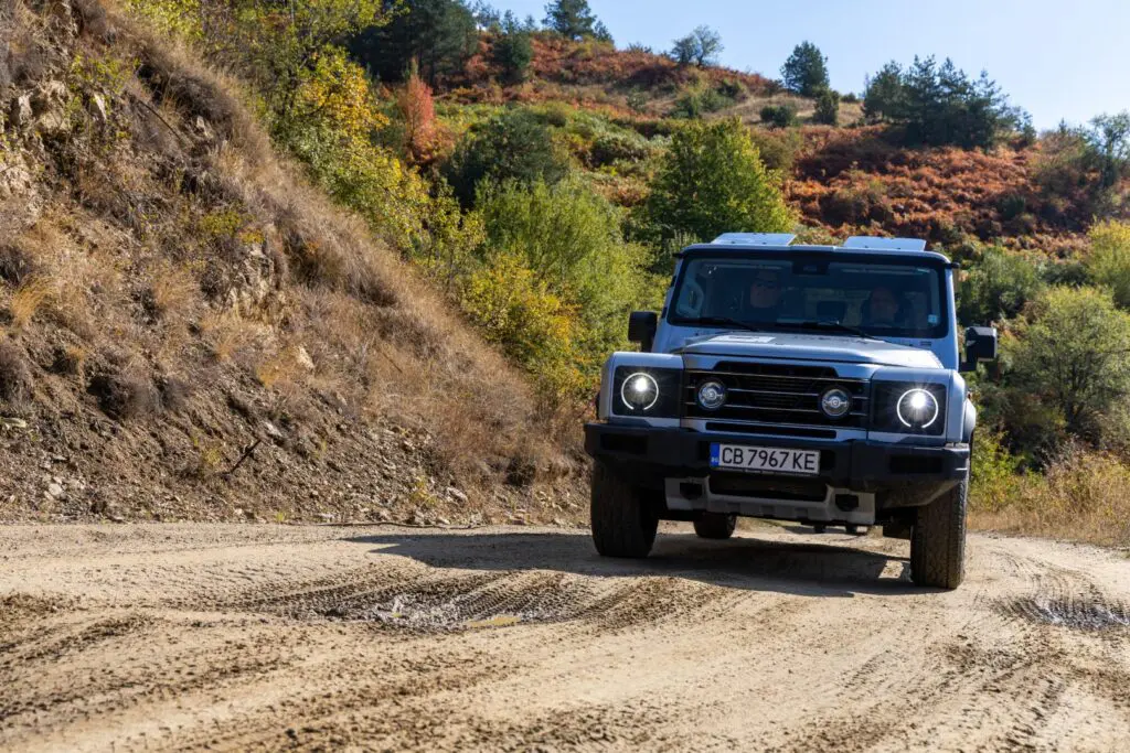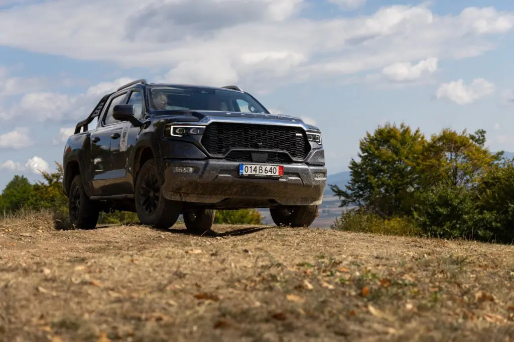 In Bulgarije kunnen we dus ritten maken met deze kandidaten, zowel onroad als offroad. Als we op het vliegveld van Sofia zijn gearriveerd staat er al een Ford Ranger PHEV voor ons klaar, dus die nemen we meteen mee. In de heuvels rondom Sofia kunnen we de Ranger meteen goed ervaren. Hij heeft een 2,3 liter viercilinder benzinemotor van 281 pk en ook een elektromotor van 74,1 kW, gepaard aan een 11,8 kWh accu. Samen leveren die voldoende vermogen. Daarbij rijdt de Ranger ook heel comfortabel. Datzelfde geldt voor het interieur, dat we al heel goed kennen. De Ford zit vol met de laatste stand van elektronica, wat helpt op asfalt, maar zeer zeker ook in het terrein. Met een eenvoudige draaiknop met wat drukknoppen is de juiste rijmodus in te stellen, alsmede vierwielaandrijving, eventueel in een lage gearing. In het offroadterrein staat de Ford uitstekend zijn mannetje.