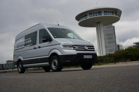 De accu’s zitten vol, we kunnen de weg op. We rijden in Hamburg, dat zich met haar centrum prima leent voor de e-Crafter. Die is namelijk specifiek ontworpen voor de last mile. Met een actieradius van maximaal 173 km is het met name stedelijk gebied waar je met de e-Crafter zal rijden. Veel verder kom je niet zonder tussentijds bij te laden. Uit praktijktesten, die Volkswagen Bedrijfswagens met verschillende klanten heeft uitgevoerd , blijkt dat de actieradius voldoende is voor gebruik in stedelijk gebied. De e-Crafter rijdt, en dat is een groot compliment waard richting Volkswagen, net als een gewone Crafter. De accu’s zorgen voor een laag zwaartepunt en dat betekent dat de e-Crafter als een blok op de weg ligt, maar nog altijd een prima weggedrag heeft. De automatische transmissie heeft maar één stand. Volkswagen heeft niet bespaard op acceleratie, dus wegtrekken bij het stoplicht gaat heel snel. Daarbij is de e-Crafter heel stil. In de cabine, en ook daarbuiten. Andere weggebruikers, en dan met name voetgangers en fietsers, horen je amper aankomen. Naar verwachting wordt volgend jaar een geluidje aan de e-Crafter toegevoegd om hen te waarschuwen.