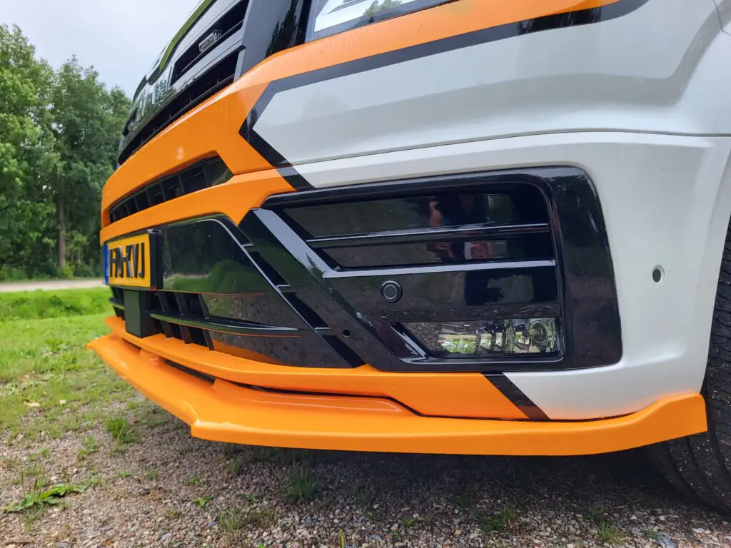 Direct daarna kwam de MAN TGE Commander GT echter direct naar de redactie van Bestelauto. Want zo’n speciaal model, die wil je weleens in levenden lijve ervaren. Het uiterlijk oogt dus supersportief en op deze versie zitten onder meer 17 inch lichtmetalen velgen, sidesteps en een MAN Individual achterspoiler. De zonneklep heeft extra LED-lampen, net als de grille. Onder die grille zien we een voorspoiler onder de bumper zitten. Die lage neus doet vrezen voor verkeersdrempels, maar gelukkig gaat alles goed. De zwart-wit-oranje kleurstelling (gewrapt) is een prima aandachtstrekker, merken we onderweg. De TGE heeft twee zijschuifdeuren, en als we er eentje opentrekken, wacht ons een grote verrassing. De laadruimte is voorzien van een meer dan complete inrichting van Aluca. De auto kan op deze manier letterlijk dienstdoen als mobiele werkplaats voor een klein autosportteam. We zien een omvormer, diverse 220V stopcontacten, een koelkast en zelfs een koffiezetapparaat is aanwezig! En laatjes in alle mogelijke maten. Indrukwekkend. We kunnen de laadruimte moeilijk opmeten maar weten van een vergelijkbaar testmodel de afmetingen nog. Als de laadruimte leeg zou zijn mag er 1391 kg mee in deze auto. Aan de trekhaak mag 3.000 kg hangen. Boven de kleurige achterdeuren zien we een grote camera hangen. Die geeft met manoeuvreren een helder beeld op het scherm in de cabine.