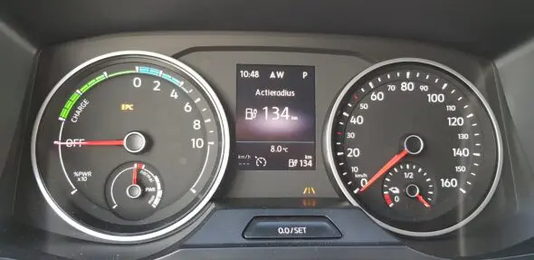 Met een nominale actieradius van 173 km is het land doorkruisen zonder bij te laden niet te doen. De stad en de regio is de plek voor de e-Crafter. Over die actieradius gesproken: bij het omdraaien van de sleutel kwam de actieradius in ons display nooit verder dan 144 km, hoe lang we de auto ook aan de laadpaal hingen. Met een actieradius van 144 km kun je natuurlijk een heel eind komen. Rijd je echt alleen in de stad, dan kun je er een dag mee vooruit. Maar moet je de regio in, of naar een andere provincie, dan kijk je toch regelmatig in het fraaie display in het multimediasysteem, waar alles over verbruik en actieradius staat. Die lichte ‘range-anxiety’ gaat vast over als je aan de auto gewend bent. In de stad en provinciale wegen verbruikten wij gemiddeld 23,1 kWh/100 km, op het stuk snelweg dat we reden 24,3 kWh/100 km. Op de snelweg is de e-Crafter overigens begrenst op 95 km/h.