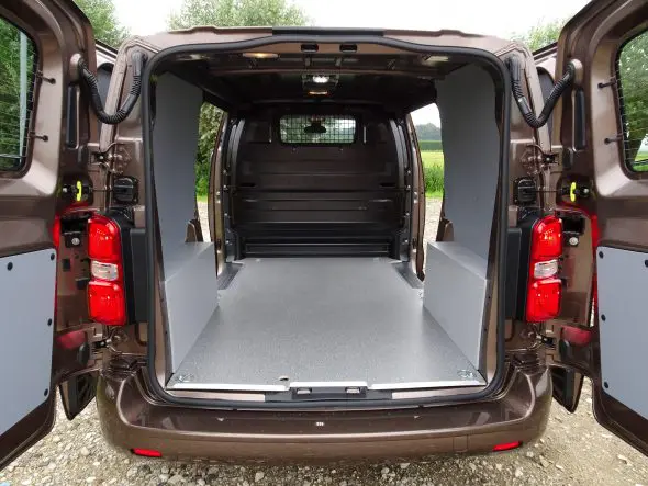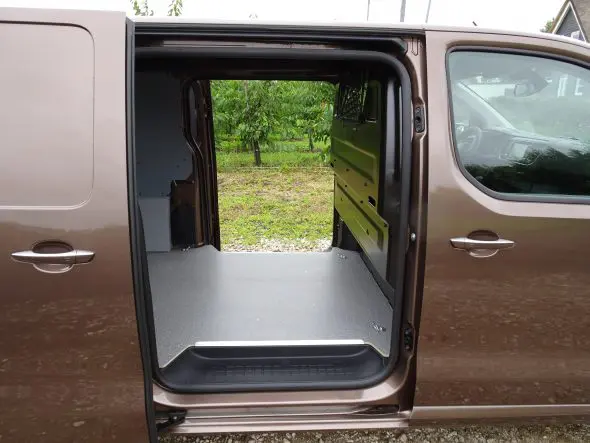 Als we nog even de laadruimte checken, zien we dat er zowaar twee schuifdeuren in de ProAce. Een optie natuurlijk, maar wel handig in sommige toepassingen. De laadlengte is met een kleine 2,5 meter in orde. De breedte is met 159 cm wat minder dan bij andere eentonners in dit segment. Het laadvolume komt in dezeWorker-versie uit op 5,2 kuub. Meer kan met een Long Worker, minder kan ook met de slimme Compact, die tegen het segment van de VW Caddy Maxi aanschurkt. Het laadvermogen bedraagt bij deze Toyota iets meer dan 1000 kg. Dat is op zich al goed, maar het is uit te breiden tot 1400 kg als je de 2.0 liter motor bestelt. Een overweging waard voor wie meer dan een ton wil laden. Het slimme Smart Cargo doorlaadluik vinden we niet in onze testauto; het is optioneel.